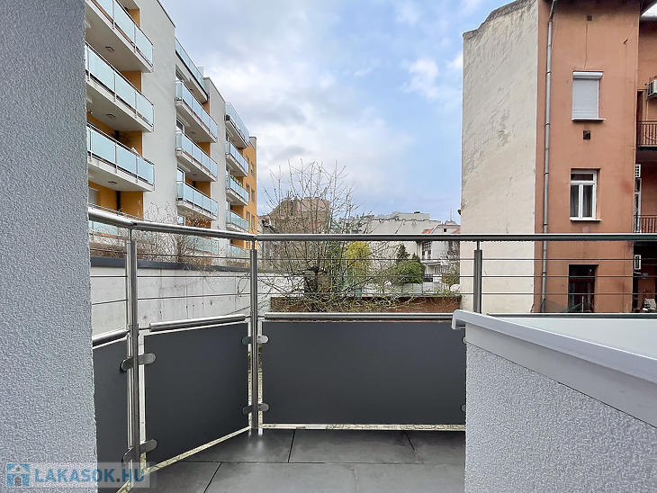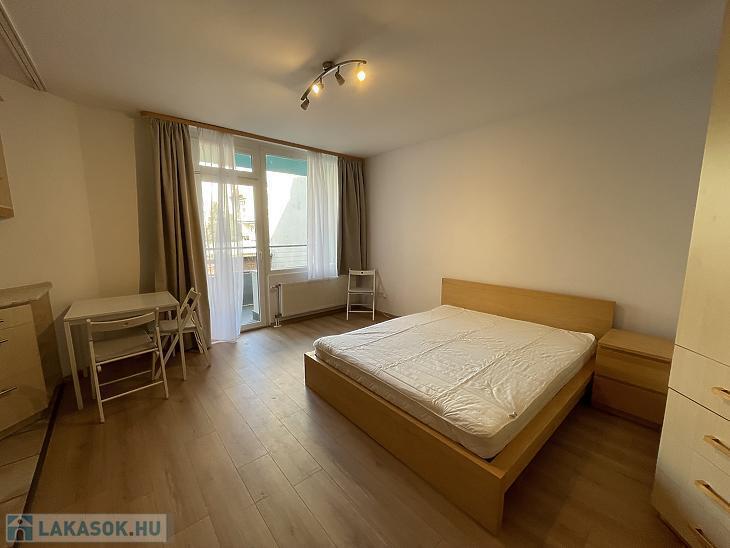Csarnoknegyedben, egy 2006-ban épült, lifttel rendelkező társasház 1.emeletén, erkélyes lakás kiadó.