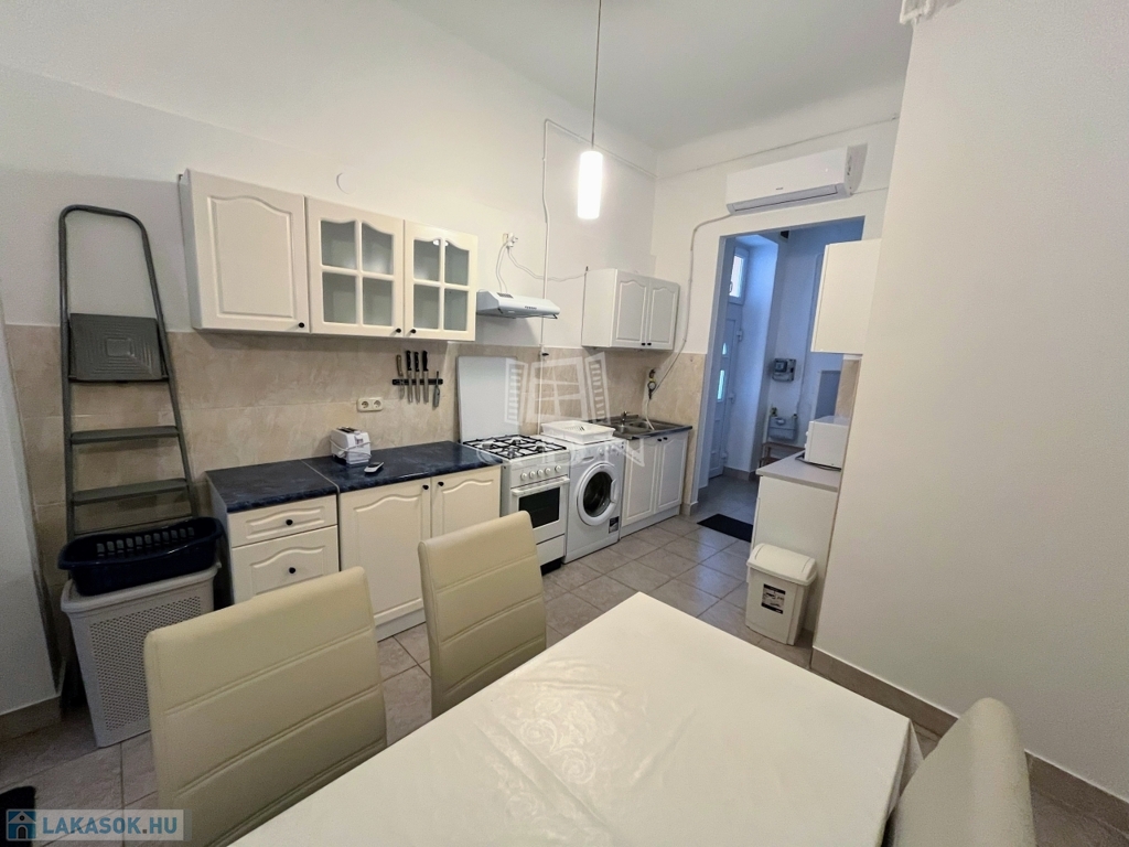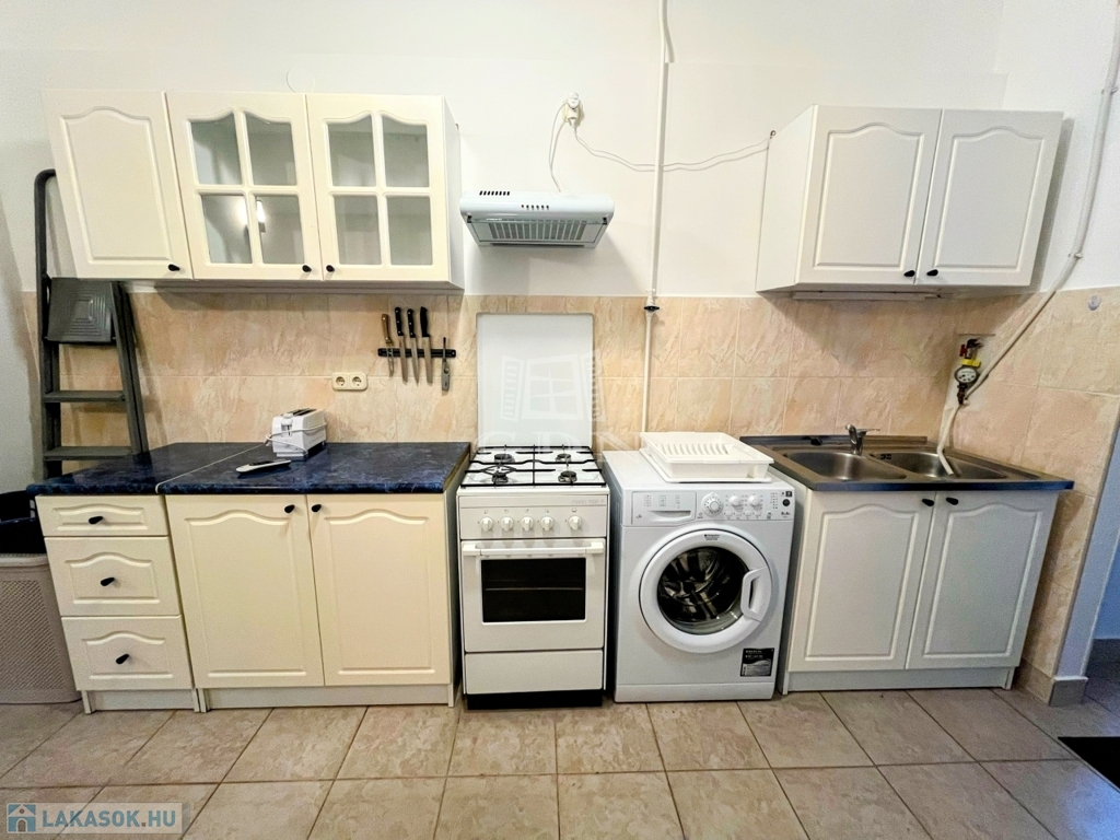 A lakás bútorozott, gépesített (mosógép, kombinált hűtőszekrény, gáztűzhely, páraelszívó, mikrohullámú sütő, tv).