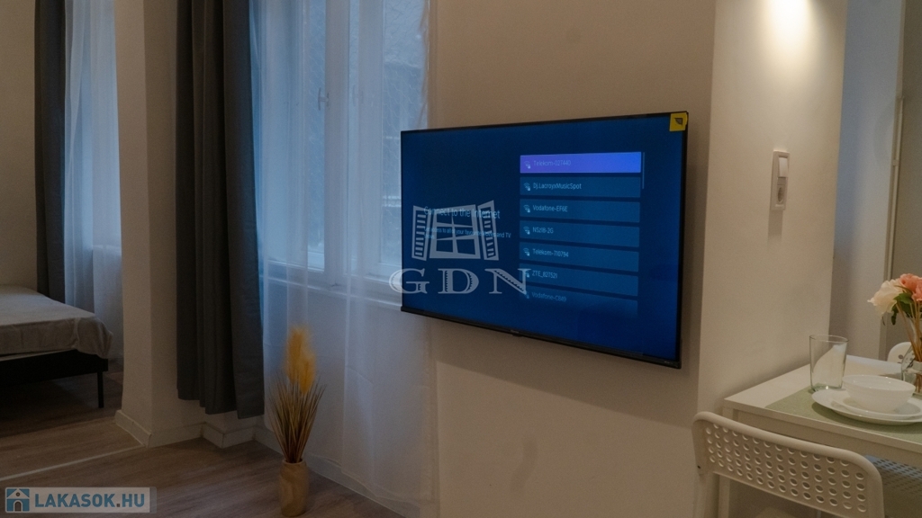 Budapest VIII. kerületében, a Népszínház utcában kiadó egy 25 m²-es, teljesen bútorozott garzonlakás. Az eszközök szintén teljesen újak, illetve még használva sem voltak.