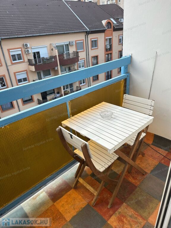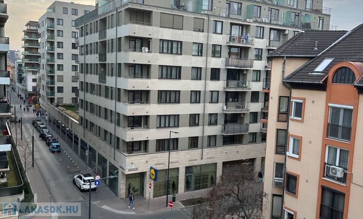 A lakás napfényes, csendes, az erkély és az ablakok a Corvin-negyed irányába néznek.