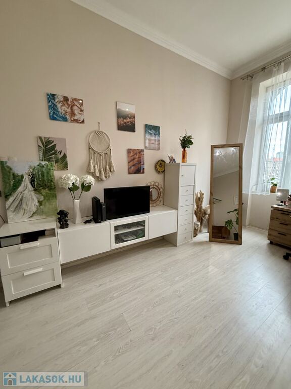 Kiadó Rákóczi úthoz közel a Fiumei úton egy 3 emeletes lift nélküli téglaépítésű társas házban lévő galériás, fürdőkádas, amerikai konyhás nappali, spejzzal, bútorozott, gépesített lakás.
