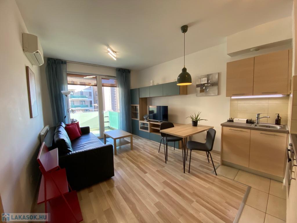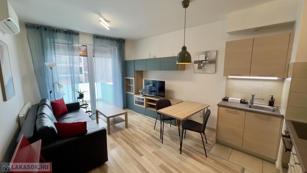 A Corvin sétány egyik közkedvelt épületében, a Park Residence-ben, 2017-ban épült, modern társasházban kínálunk kiadásra egy bútorozott, amerikai konyhás + hálószobás, erkélyes lakást.