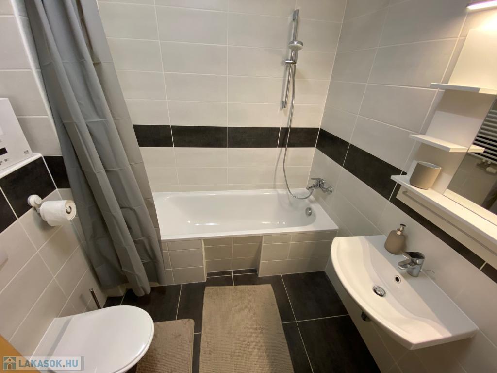 A fürdőszoba kádas, WC-vel, mosógép is rendelkezésre áll.