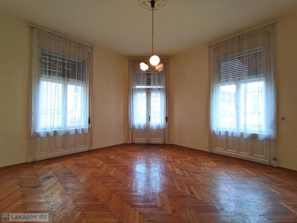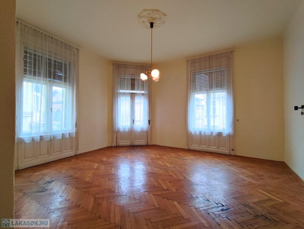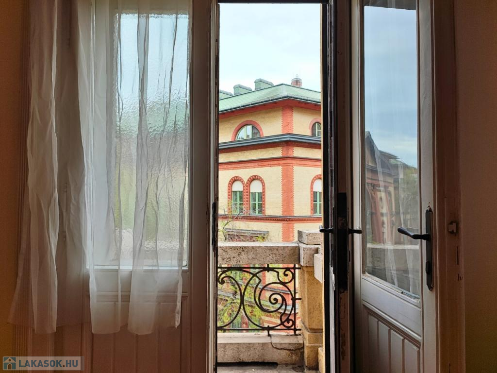 Két szoba ablakai utcára, egy a ház csendes, belső udvarára néz. Az ablakok rendenyősek.