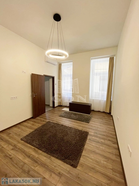 Budapest VIII. kerületében, a József körút Baross utcához közeli részén, jó állapotú ház 1. emeletén kiadó egy frissen, teljes körűen felújított, 50 m²-es lakás.
