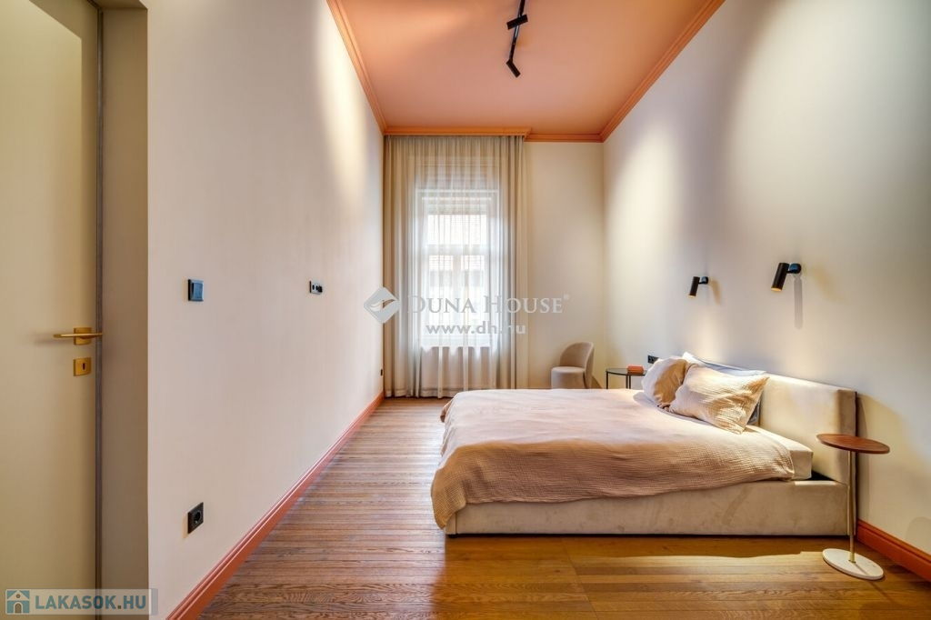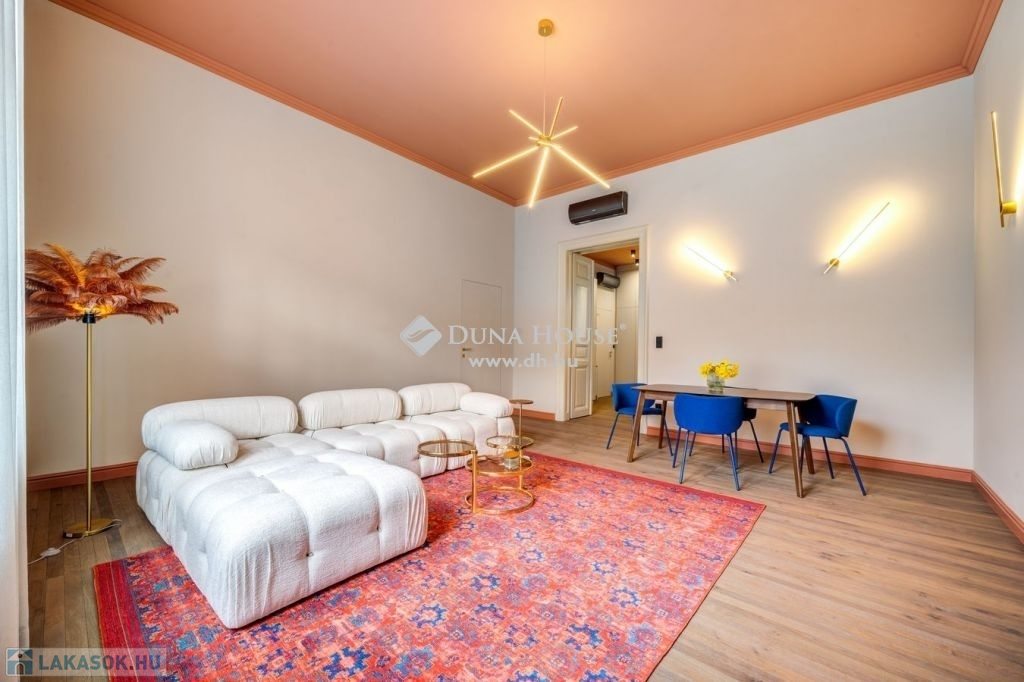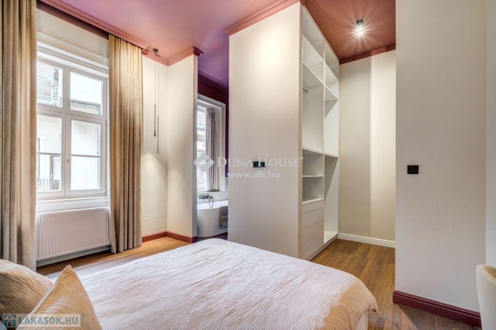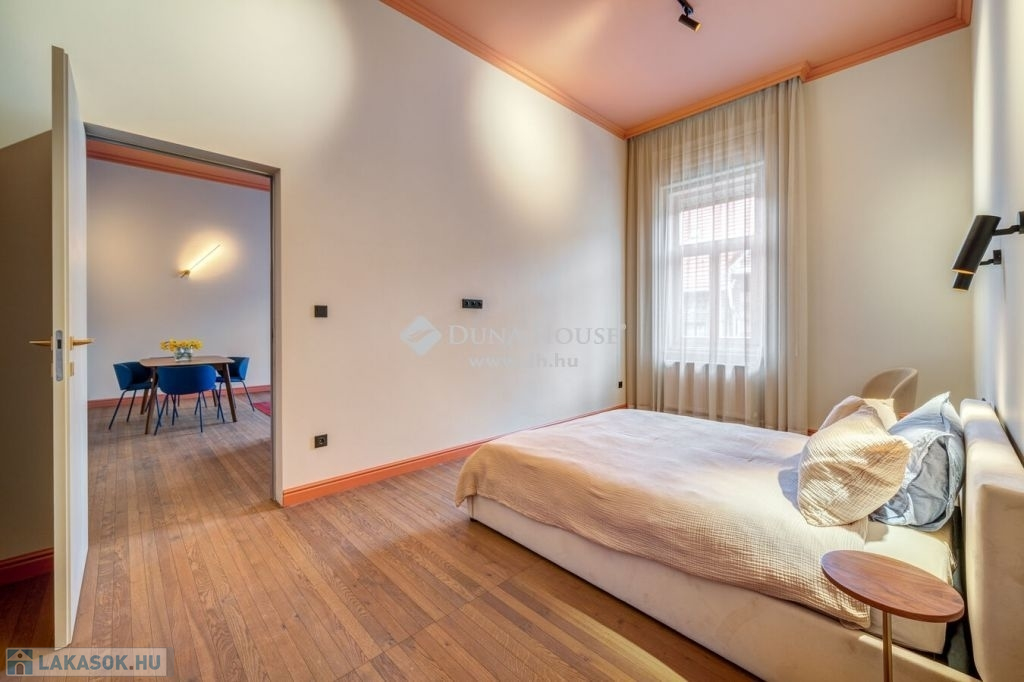 Elegancia és kényelem a PALOTANEGYED szívében – bútorozott kiadó lakás hosszú távra.Budapest egyik legpatinásabb városrészében, a Palotanegyedben kínálunk hosszú távra bérbeadásra egy 99 nm-es, teljes körűen felújított, 3. emeleti, VILÁGOS és TÁGAS lakást. Az ingatlan főbb jellemzői:2 külön nyíló hálószoba tágas nappali és modern, teljesen felszerelt amerikai konyha,mindkét hálószobából közvetlen fürdőszoba nyílik – az egyik zuhanyzóval és WC-vel, a másik káddal, valamint külön vendég-WC teljesen bútorozott, rendkívül igényes kialakítás: PRÉMIUM minőségű bútorokkal és magas színvonalú anyaghasználattal klímaberendezés, riasztórendszer, kamerarendszer mosó- és szárítógép egyben.Bérleti díj: 1750 EUR/hó (nettó), hosszú távra.Kaució: 3 havi bérleti díj Kisállat nem hozható.A lakás ideális választás igényes bérlőknek, legyen szó diplomatákról, üzletemberekről, párokról vagy kisebb családokról, akik a belvárosi életstílust modern kényelemmel ötvöznék.Ha kérdésed van vagy szeretnéd megtekinteni a lakást, keress bizalommal!