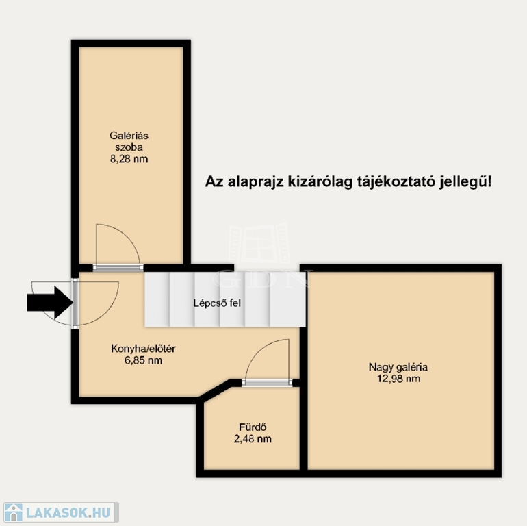 - 1 db 12 m²-es ággyal rendelkező galéria