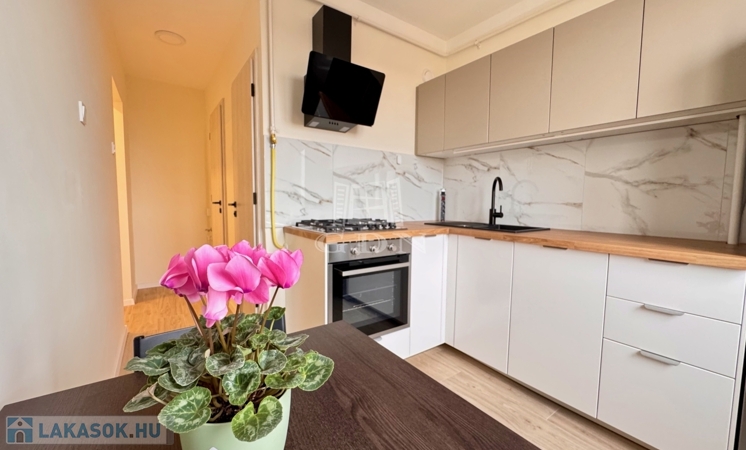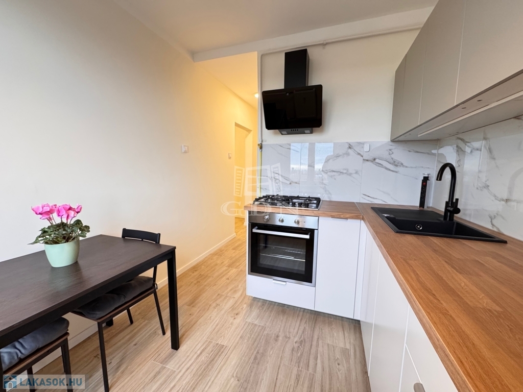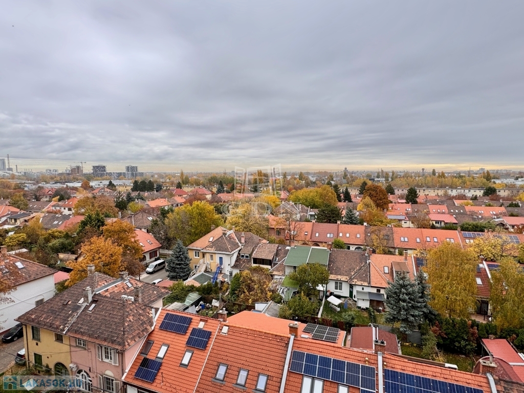 XI. kerület Albertfalván, a Fegyvernek utcában, egy teljesen felújított, IKEA bútorokkal berendezett, gépesített konyhával, gardróbszekrénnyel, 2 szobás VII. emeleti, családi házakra néző, panorámás lakás, minimum 1 évre kiadó!