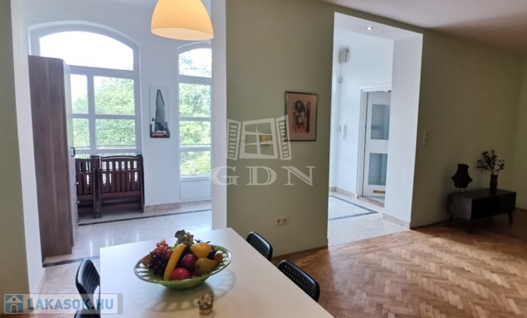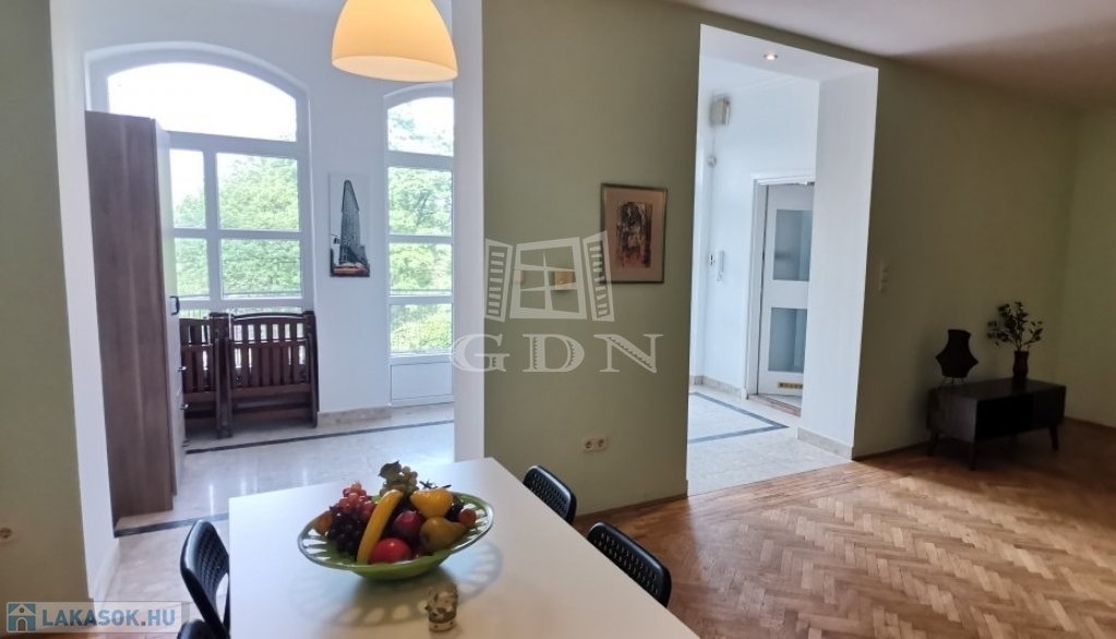 A XII. kerületben, jó tömegközlekedéssel rendelkező, csendes környéken kiadó egy 2 szobás, kertre néző lakás 15 nm-es panorámás terasszal.