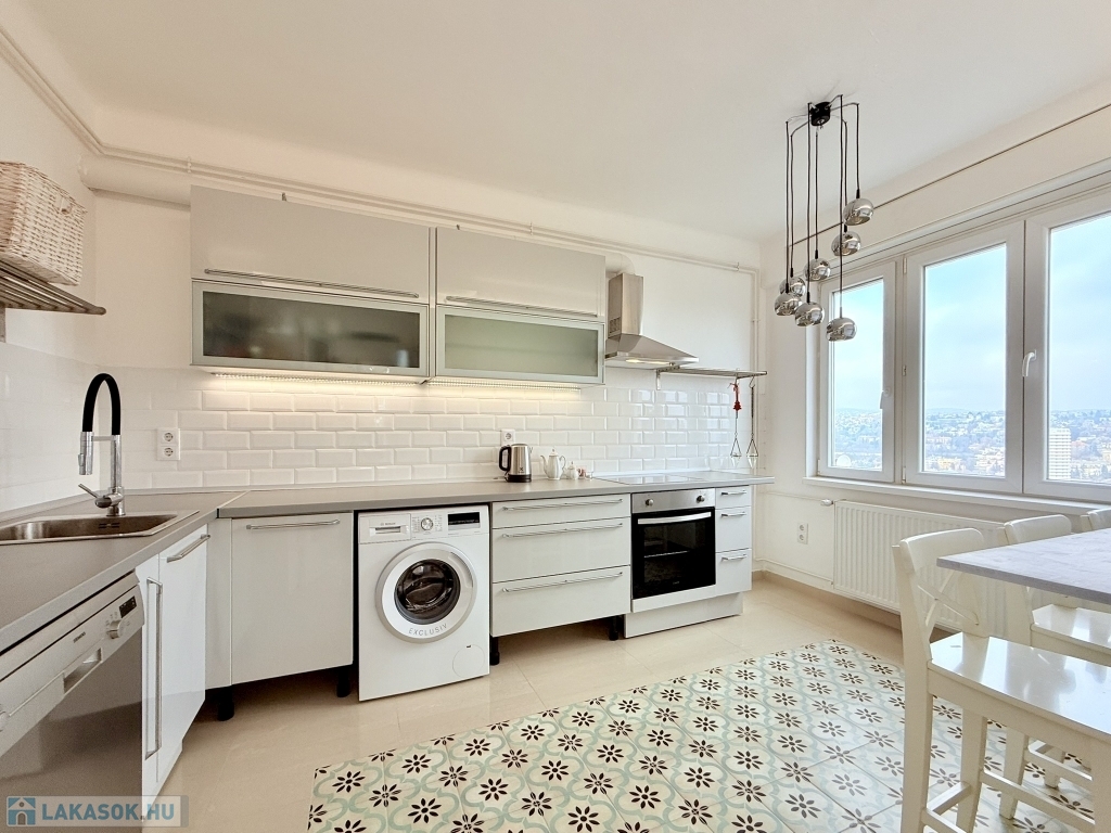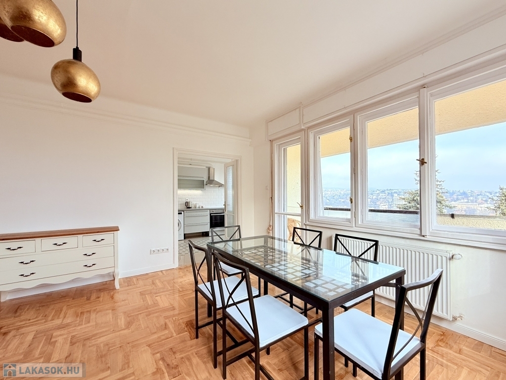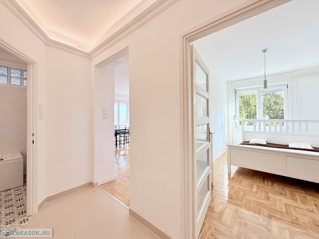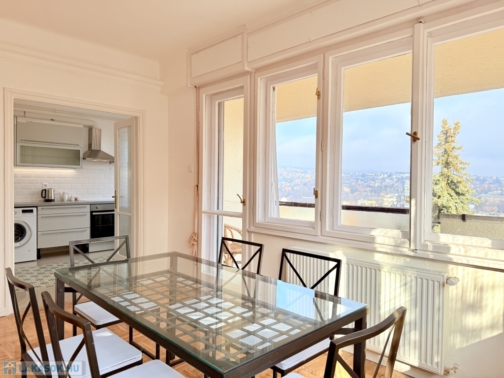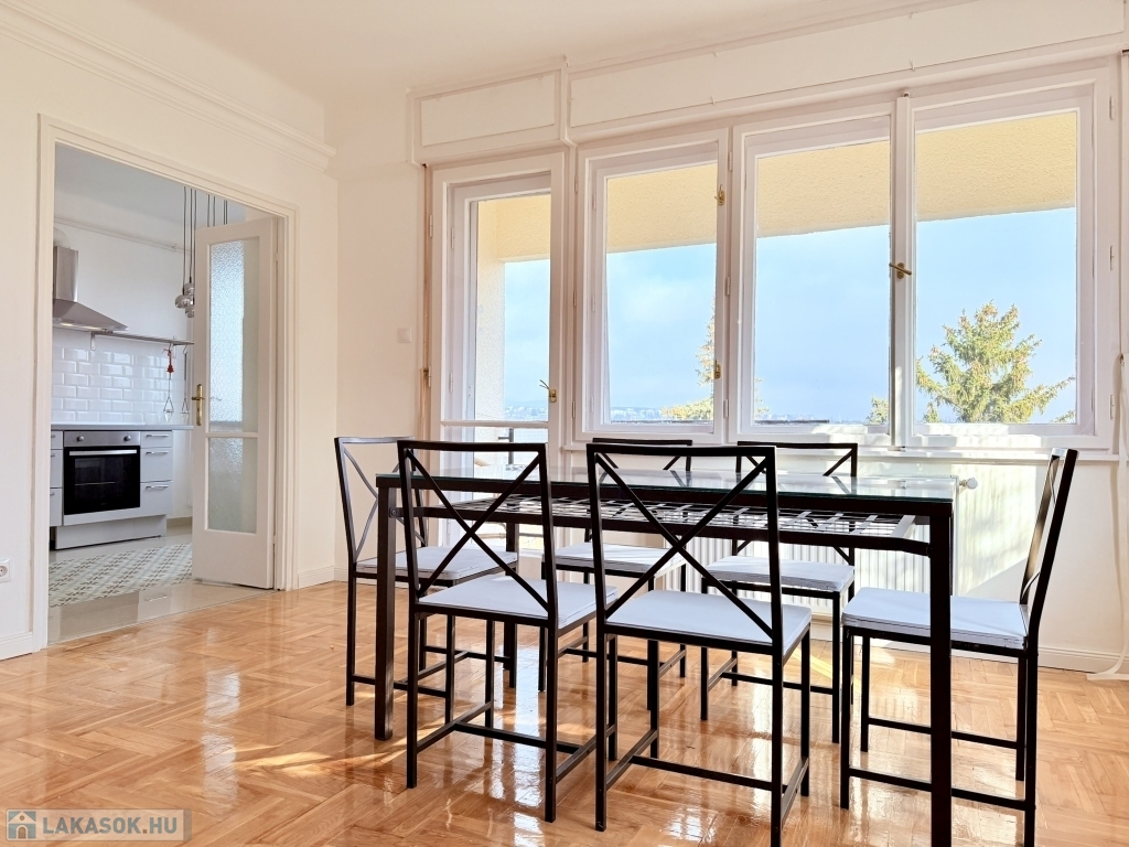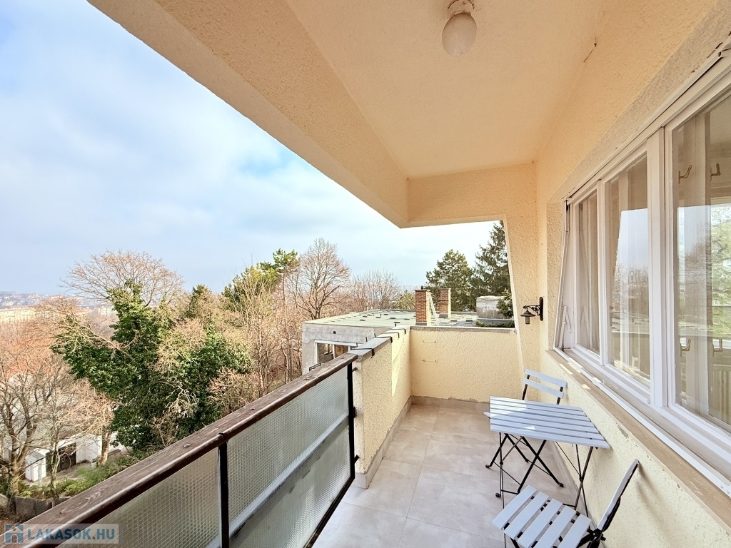 XII. KISSVÁBHEGY egyik legkedveltebb csendes mellékutcájában, a Kis-Sváb-hegy Természetvédelmi Terület és a Városmajor park között, néhány perc sétára a tömegközlekedéstől, LEGFELSŐ emeleti, 78 nm hasznos alapterületű, nappali + két hálószobás, keleti fekvésű, TELJESEN felújított, BÚTOROZOTT lakás, rózsadomb felé néző panorámás terasszal, tárolóval kiadó!