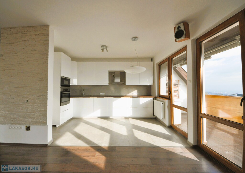 A lakás a tájolásának köszönhetően rendkívül világos és napos, a legfelső emeleti elhelyezkedéséből adódóan könnyen átszellőztethető, a nappali térhez közvetlenül kapcsolódó jól használható, panorámás terasszal is rendelkezik.