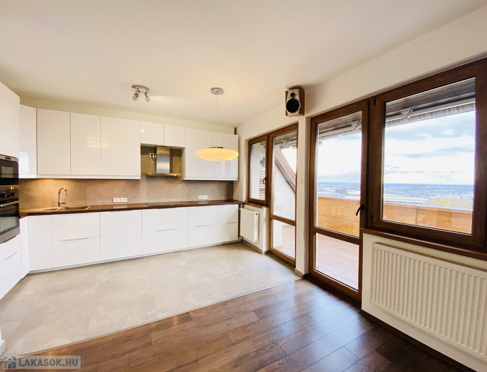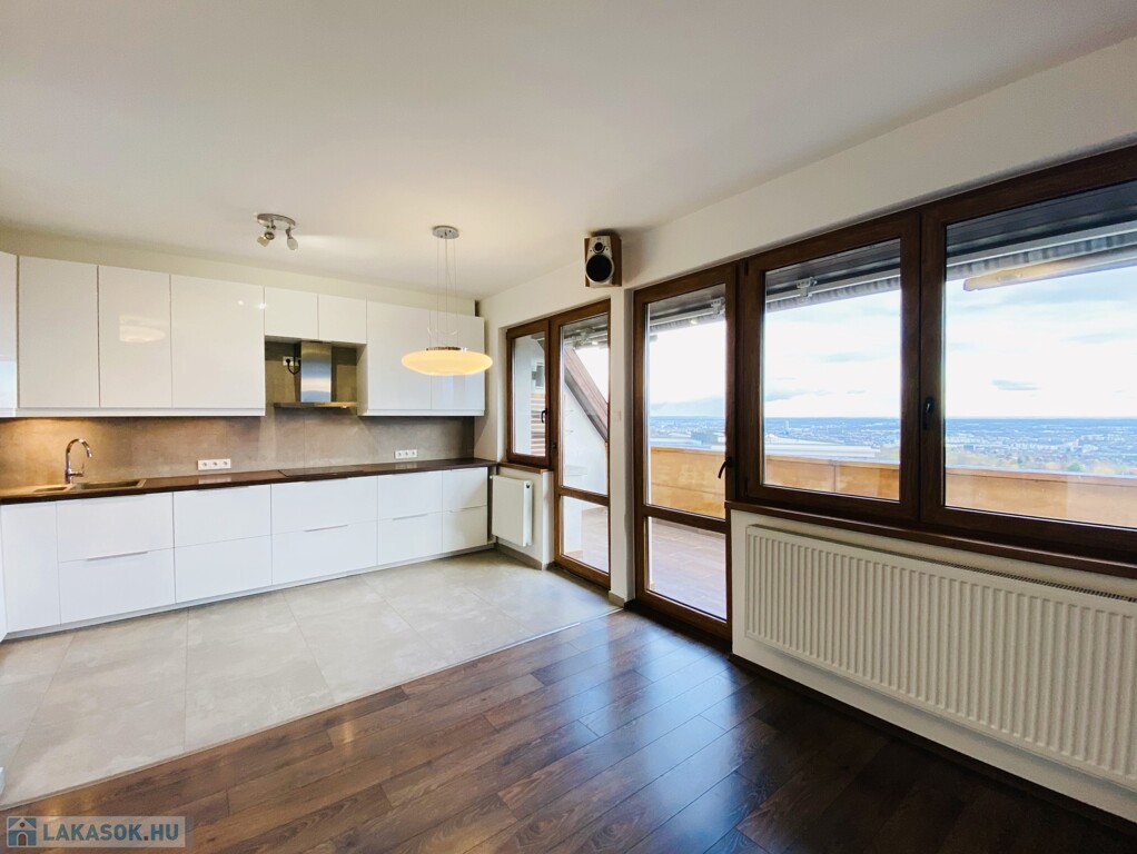 XII. Széchenyi-hegy felső részén, a János Zsigmond utcánál, hegyvidéki környezetben, csendes zsákutcában, KITŰNŐ állapotú, 95 nm számított területű, nappali + 3 hálószobás, dupla-komfortos, klimatizált lakás, ELVEHETETLEN VÁROSI PANORÁMÁVAL rendelkező terasszal, 1 gépkocsi tárolására alkalmas önálló garázzsal, tárolóval hosszútávra kiadó!