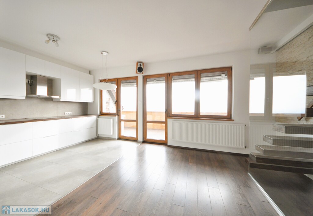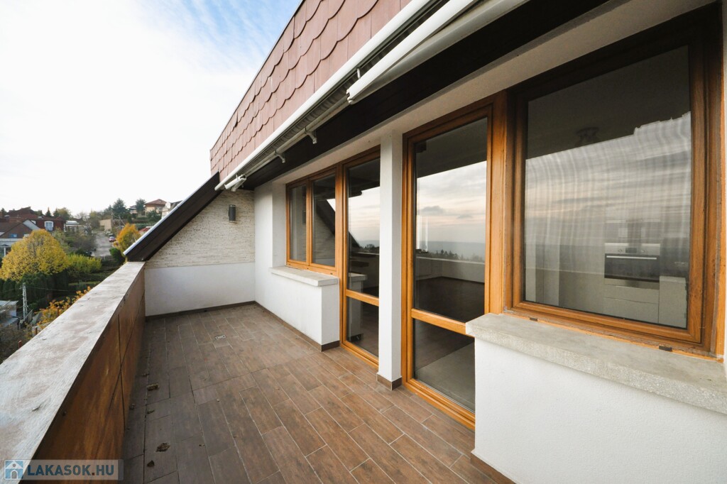 A kényelemről további extra berendezések - redőny, szúnyogháló, riasztó, kiépített audio rendszer – gondoskodnak, a dél-keleti tájolású terasz felett található napellenző mellett.