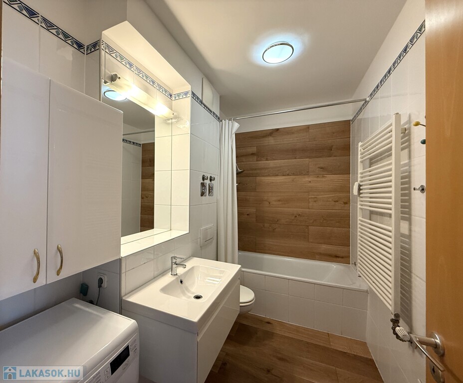 • 2-FÜRDŐSZOBA (2-wc-s, kádas és zuhanyzós, törölközőszárítós), beépített szekrények.