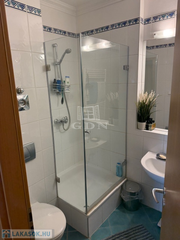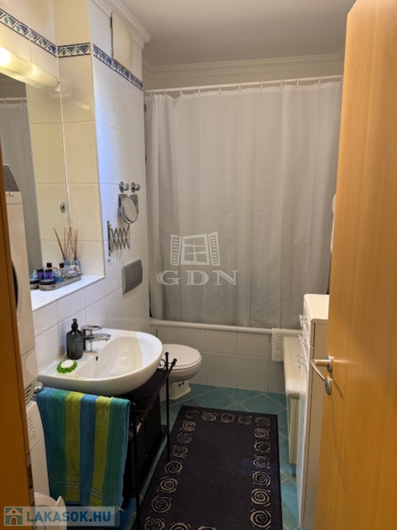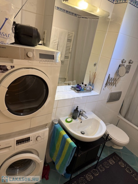 A lakás dupla fürdőszobával, gépesített konyhával és részleges bútorozottsággal rendelkezik, a képeken látható bútorok egy része a jelenlegi bérlő tulajdona.