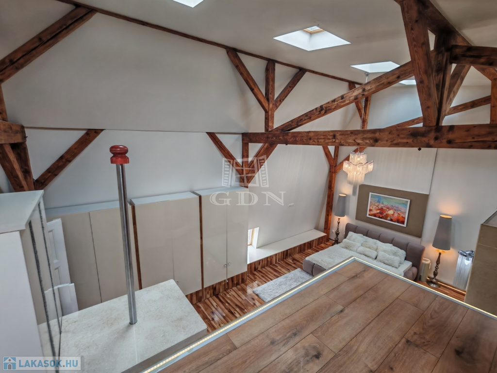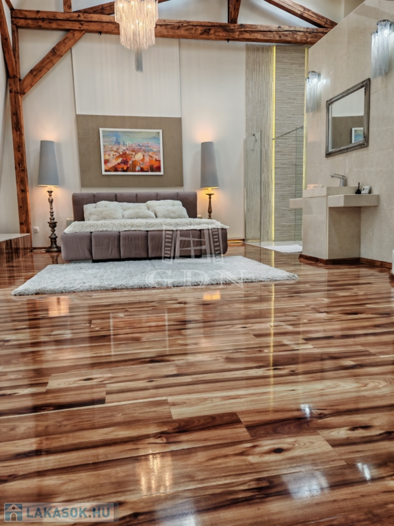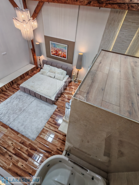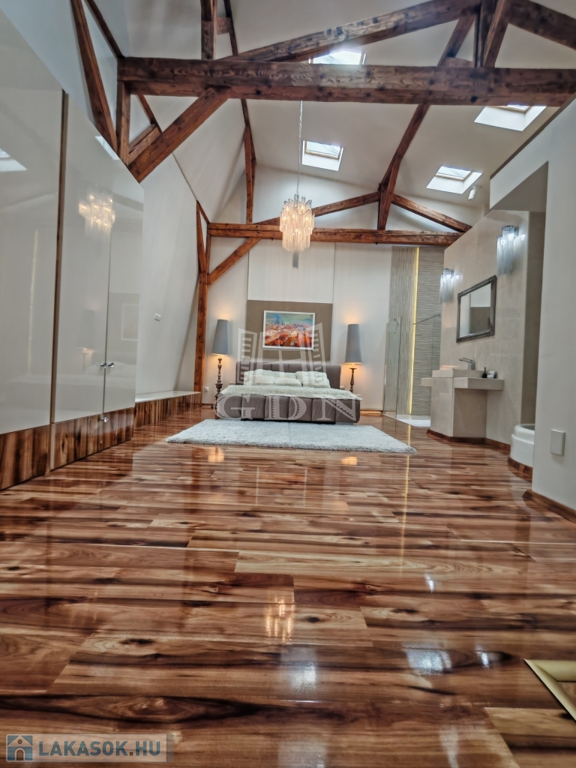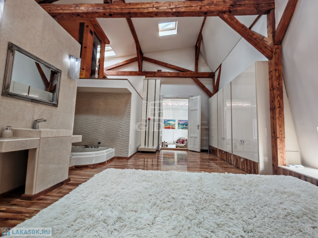 Az ingatlan éke amitől garantáltan el áll a lélegzete....a szint eltolással kialakított, 5 méteres belmagasságú hálószoba aminek a tetején ablakok vannak így akár ágyból is láthatjuk a csillagos eget vagy ébredhetünk arra,hogy a hasunkra süt a nap!