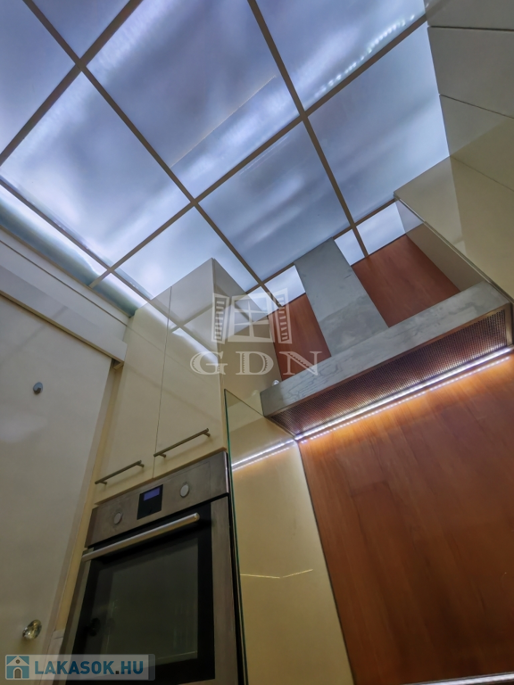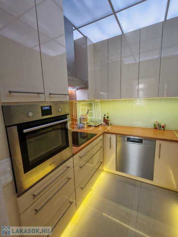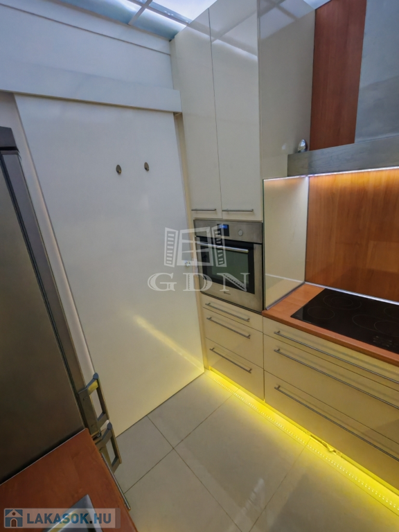 Exkluzív és biztonságos környezet: Az 5. emeleten mindössze két lakás található, a lift pedig csak kulccsal használható, így a privát szféra teljesen biztosított. A lakás távfelügyeletre kötött riasztó rendszerrel rendelkezik.