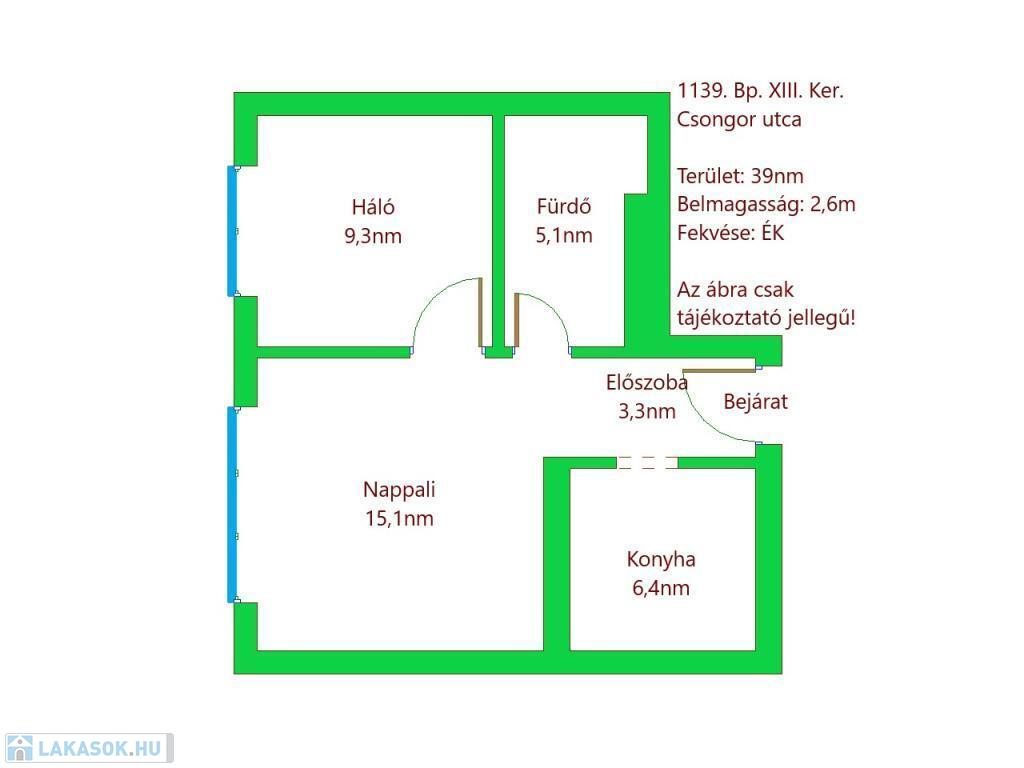 Budapest 13. kerületében, Csongor utcára néző, 2005-ben épült ház 3. emeleti világos, egyedi cirkófűtéses lakás kiadó teremgarázzsal együtt max. 1-2 fő felnőtt részére, vagy 1 felnőtt és egy gyerek számára. Az erkély nélküli, 40 nm, nappali + 1 hálós ingatlan bútorozott, hűtőszekrény és mosógép is van. Fürdőszobájában zuhanykabin, és a toalett is ebben a helyiségben található. Közös költsége: 18.000.- Ft. Bérleti díj: 250.000.- Ft/hó a teremgarázshellyel együtt, melynek bérlése nem kötelező. Tehát a lakás bérleti díja 230.000.- Ft, amennyiben nincs szüksége a garázsra. Dohányzás és állat tartása nem megengedett. Átlag rezsije mindennel együtt 35.000.- Ft havonta. 2 havi kaució letétele szükséges.
