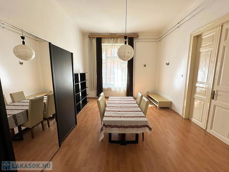 Kiadó a Radnóti Miklós utcában, egy polgári ház második emeletén található 67 nm-es, világos és tágas, két szobás lakás. A keleti fekvésnek köszönhetően reggeltől fényárban úszik, a cirkó fűtés gondoskodik a kellemes melegről. A lakás bútorozott, barátságos hangulatú, ablakai az utcára néznek. Ideális választás lehet családoknak és azoknak is, akik kisállattal költöznének. Elhelyezkedés szempontjából pár perc séta a Westend, éttermek, kávézók, közlekedési eszközök: metró, villamos, buszjáratok.