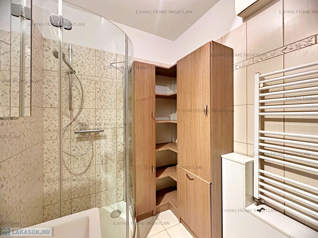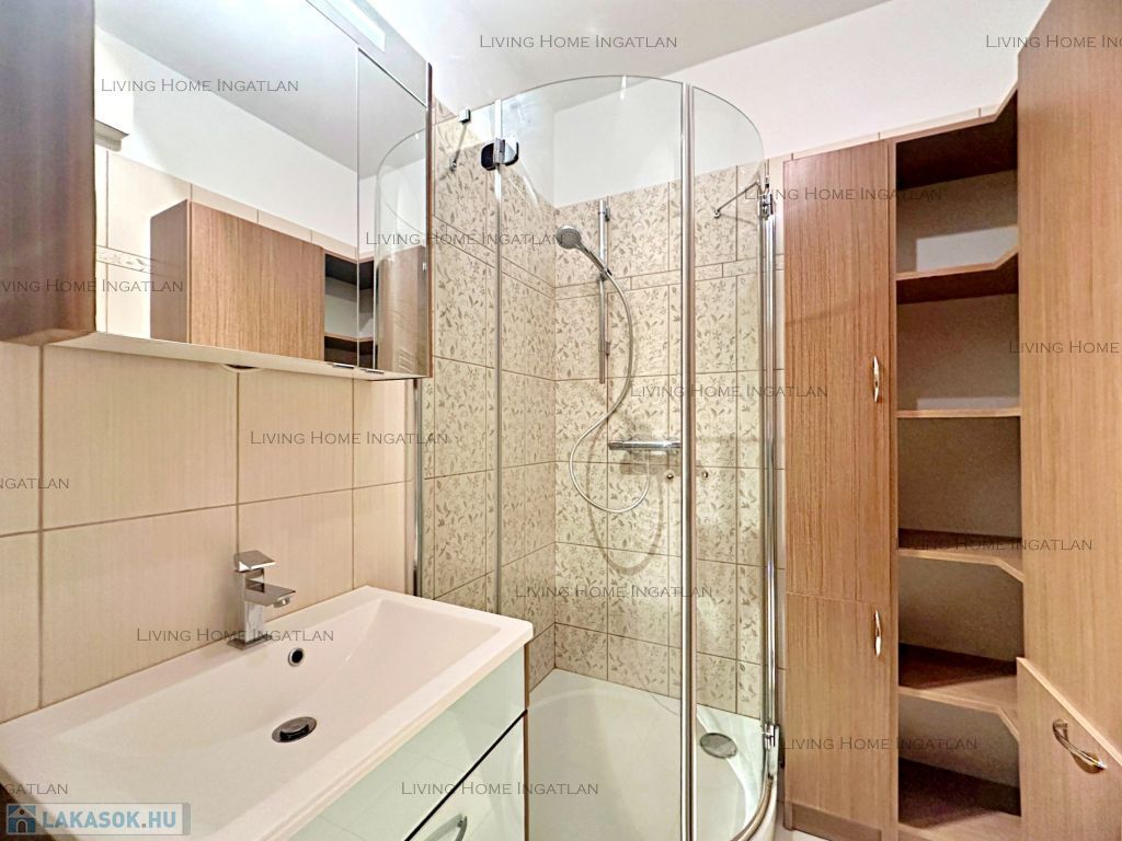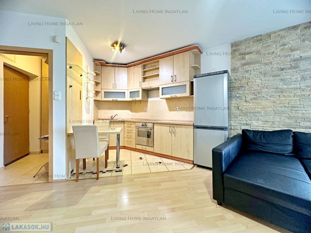 Az ingatlan beosztása: előtér beépített bútorral, egylégterű nappali-étkező-konyha, hálószoba erkélykapcsolattal, közlekedő, tusolóval ellátott fürdő, wc.
