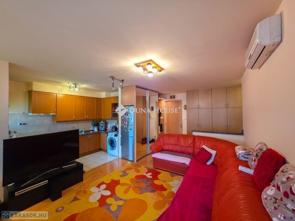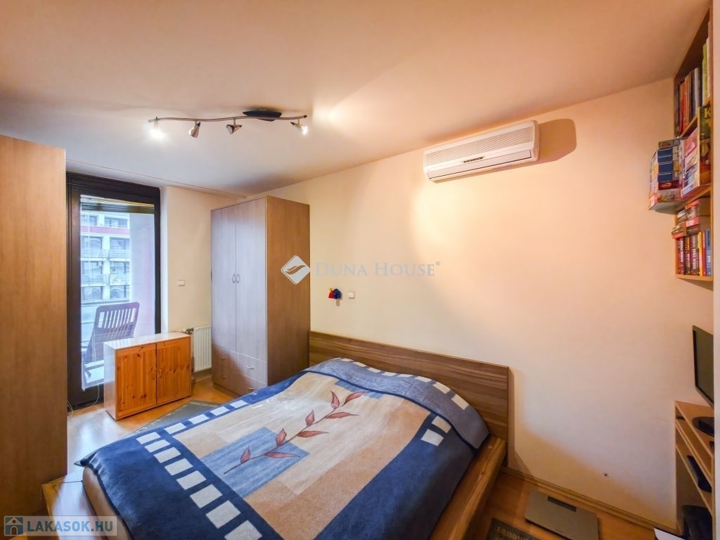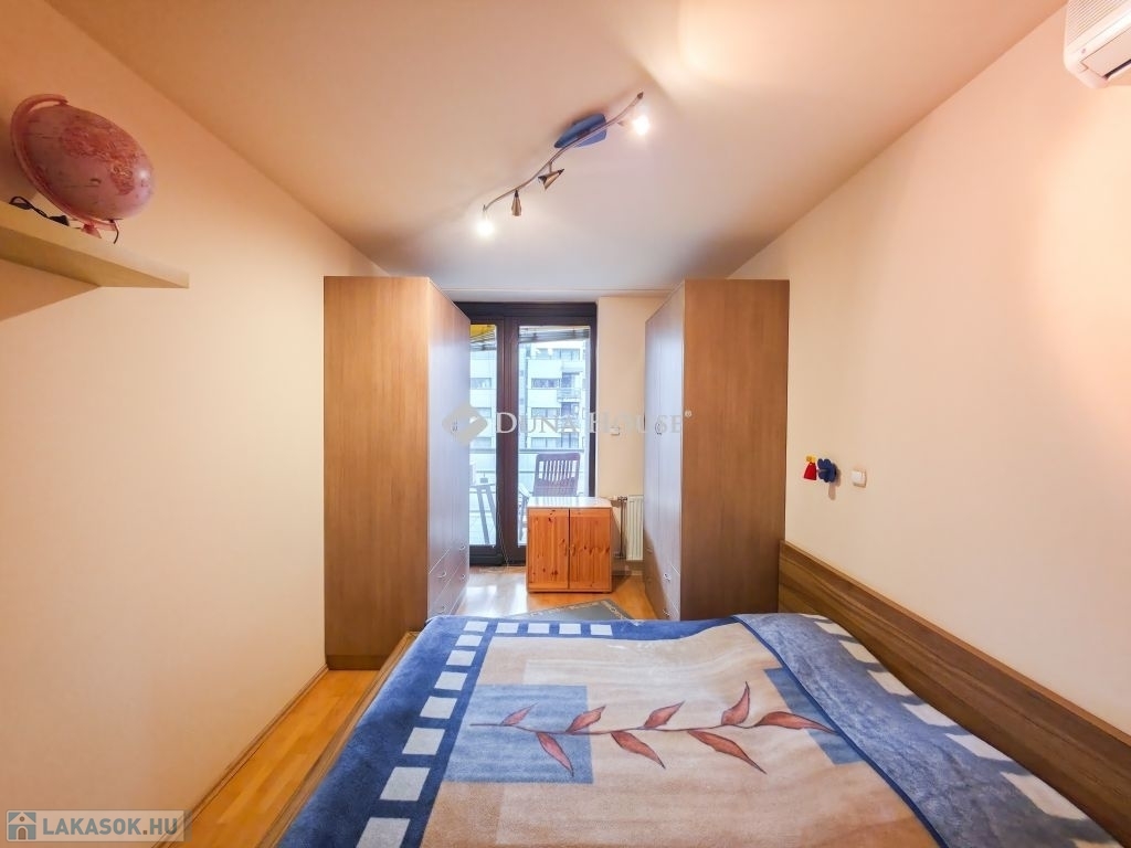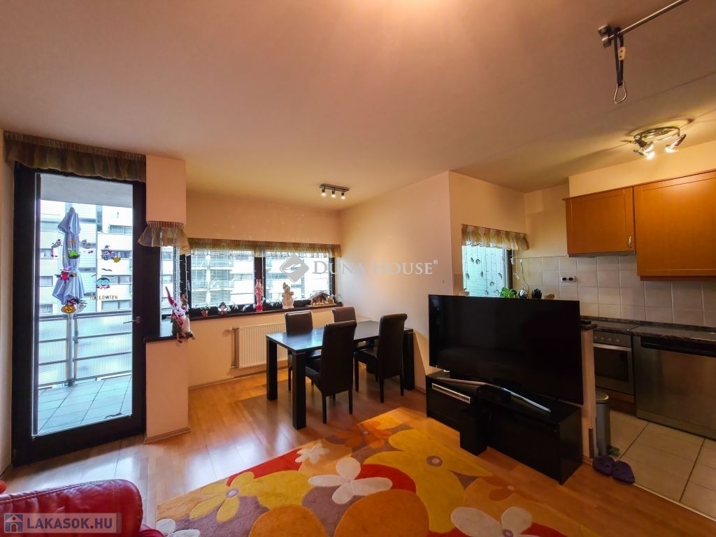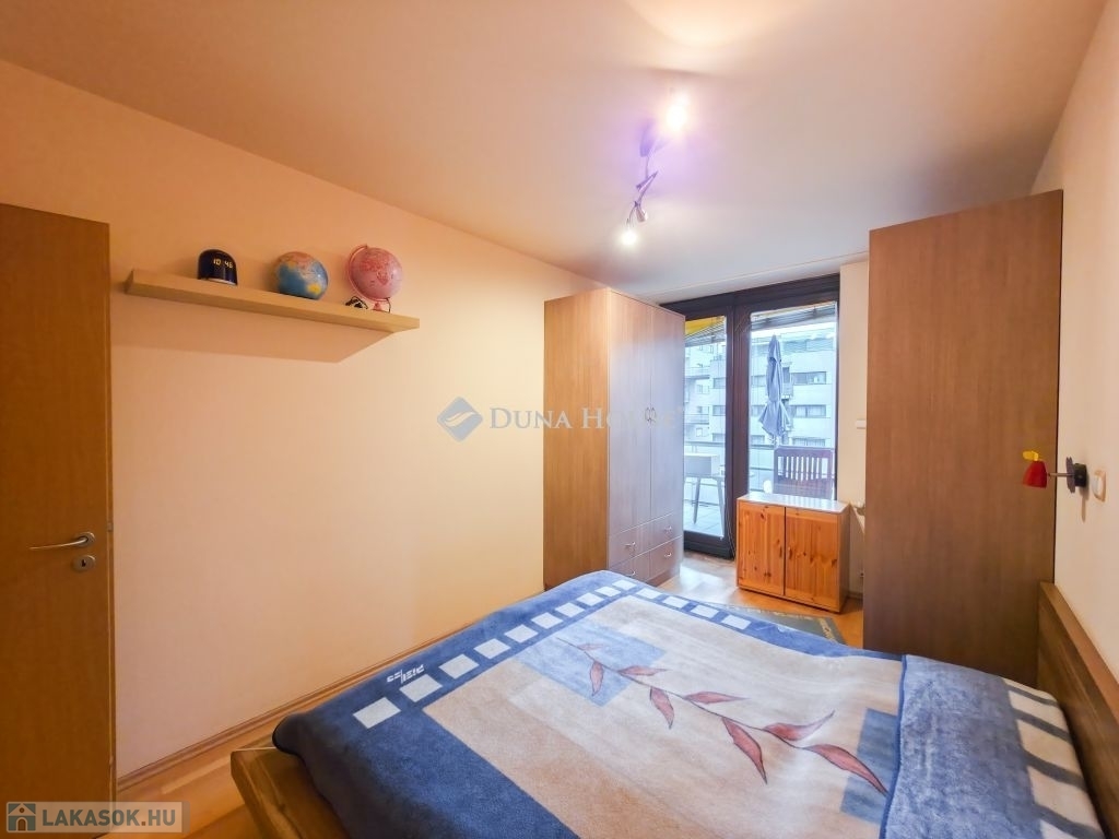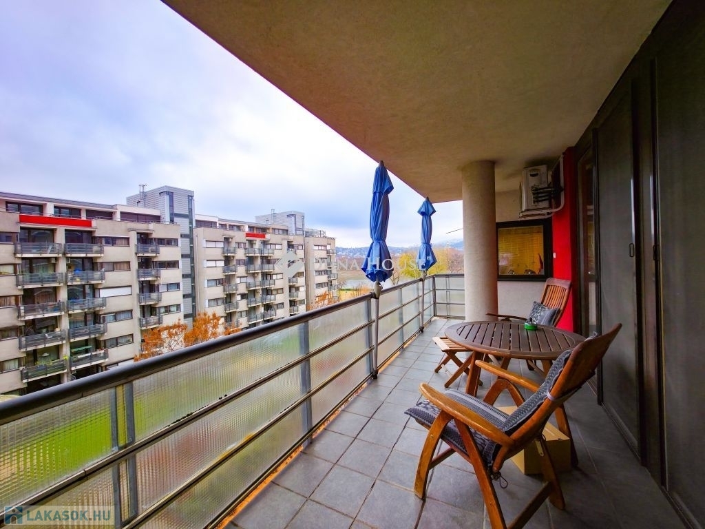 Az 5. emeleti, déli tájolású, amerikai konyhás nappalis + 2 külön nyíló szobás lakás állandóan világos és barátságos. A praktikus elrendezést külön WC, külön tároló és kényelmes fürdőszoba egészíti ki. Gyönyörű dunai panoráma tárul eléd. Az ingatlan szép, megkímélt állapotú, jó kisugárzású, azonnal otthonos érzést ad. A házban wellness-részleg, konditerem, valamint 024 órás portaszolgálat teszi teljessé a komfortot, teremgarázzsal együtt hosszú távra kiadó. Kiürítési nyilatkozat szükséges.