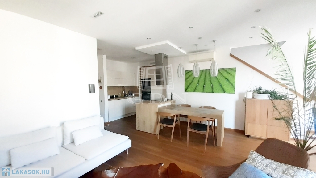 A DUPLA KOMFORTOS lakás extrán csendes, parkosított környezetben helyezkedik el a társasház legfelső szintjén.