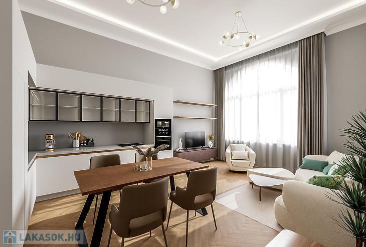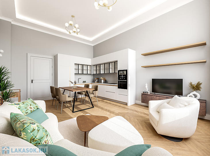 A fotók látványtervek, a lakás berendezése új bútorokkal valósul meg, melyek képtől eltérhetnek.