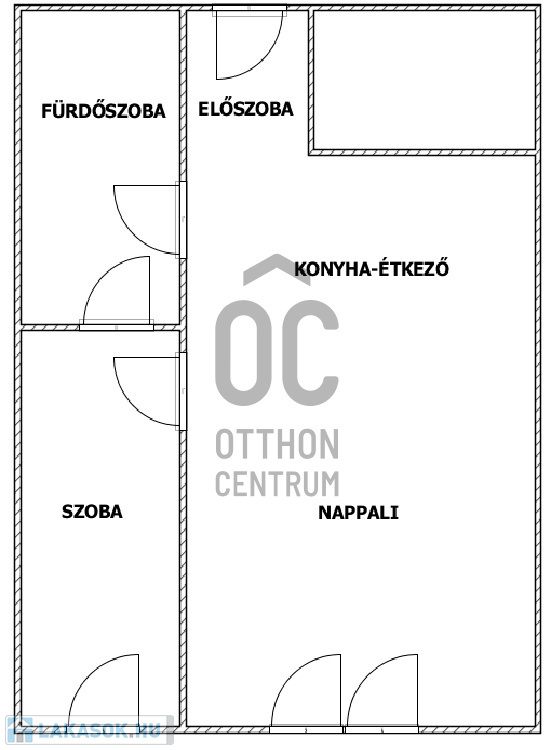 -Nappali–étkező–konyha egy légtérben + külön hálószoba