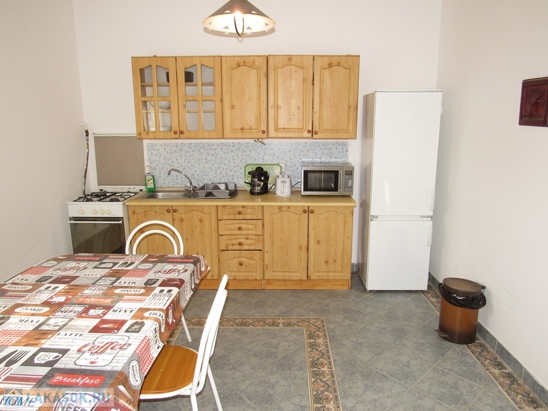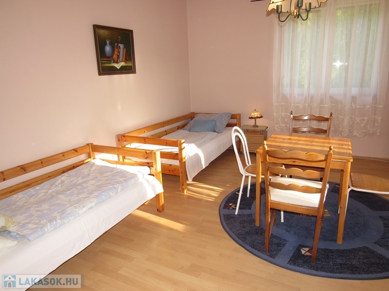 Az emeleten található 50 m2-es, 1 szobás apartman 3 ággyal és 1 pótággyal rendelkezik. Saját fürdõszoba, Wc, konyhasarok és étkezõsarokkal.