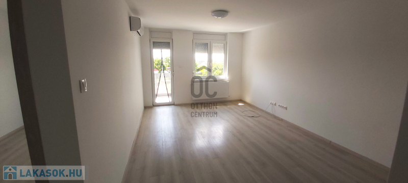 A lakásban felszerelt konyha található hűtővel, egyébként nem bútorozott.
