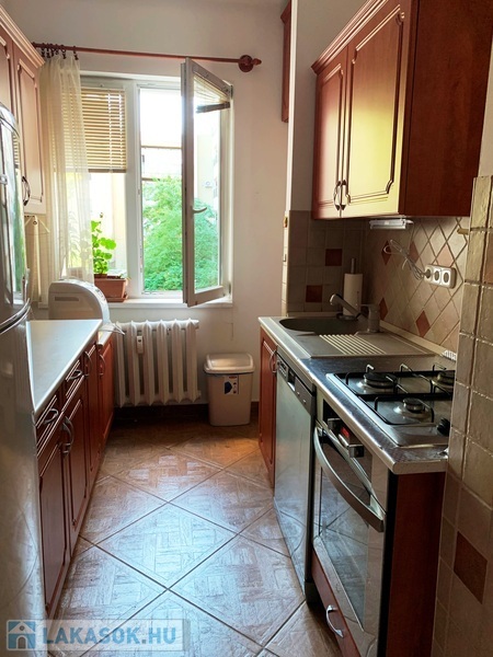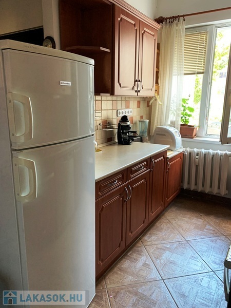 Piac utcai, 1. emeleti, 66 m2-es, 3 szobás, konyhás, fürdõszobás, bútorozott lakás hosszú távra kiadó. A lakás mûanyag nyílászárós, reluxa, új bejárati ajtó, mosogatógép, hûtõ, mosógép, mikró, teljesen berendezett. Igény szerint az udvarban kocsibeállási lehetõség!