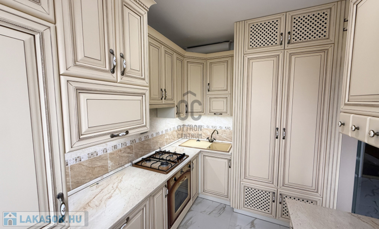 •Elrendezés: nappali (23m2), hálószoba (13m2), gardrób (6,5m2), külön étkező, konyha, fürdőszoba, külön WC