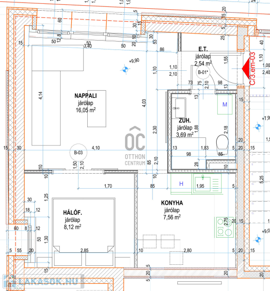 Az ingatlan 38 m2 - es, modern elrendezésű.