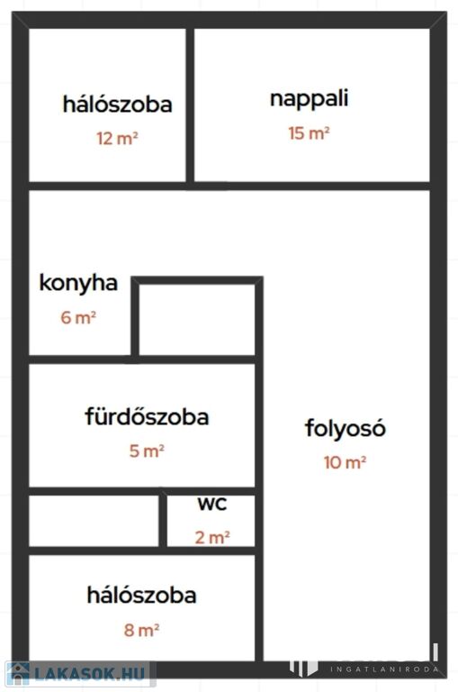 - **Elrendezés:** 2 hálószoba, 1 tágas nappali, külön fürdőszoba és WC