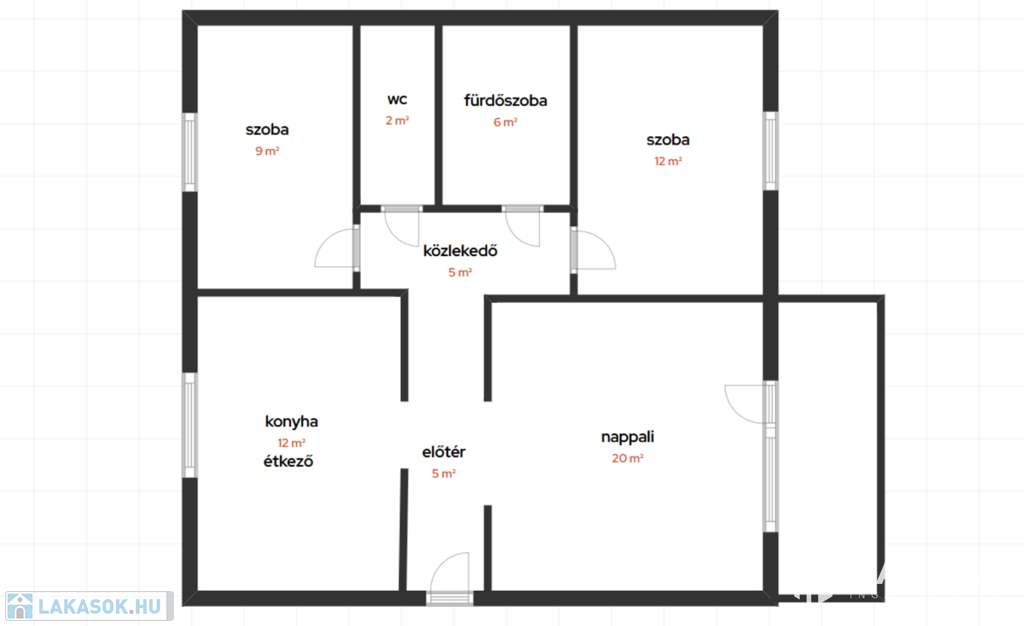 - **Szobák száma:** 2 hálószoba + 1 nappali