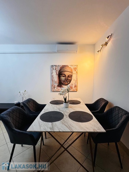- Teljes bútorzat + modern gépesítés (mosógép, hûtõ, mikró, sütõ, tûzhely, elszívó, étkészlet)