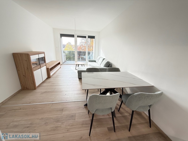 Kiadó a Vargakertben új építésû, 2024 decemberében átadott 12 lakásos társasházban: 62,5 m2 lakás + 5,6 m2 oldalkertre nézõ erkéllyel, tulajdonostól.