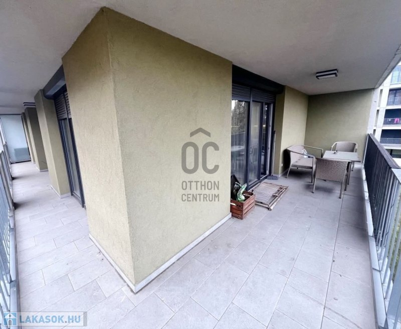 A lakás teljesen berendezett és gépesített, azonnal költözhető, és egy körbeölelő, 18 m²-es saját erkély teszi különlegessé, amely minden helyiségből megközelíthető.