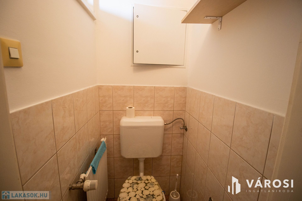 Az udvarra néző nappali + 2 szoba ablakai délkeleti fekvésűek; egyéb helyiségek konyha, spájz, közlekedő, fürdő külön wc, előszobában a bejárat mellett beépített gardrób, műanyag külső nyílászárók.