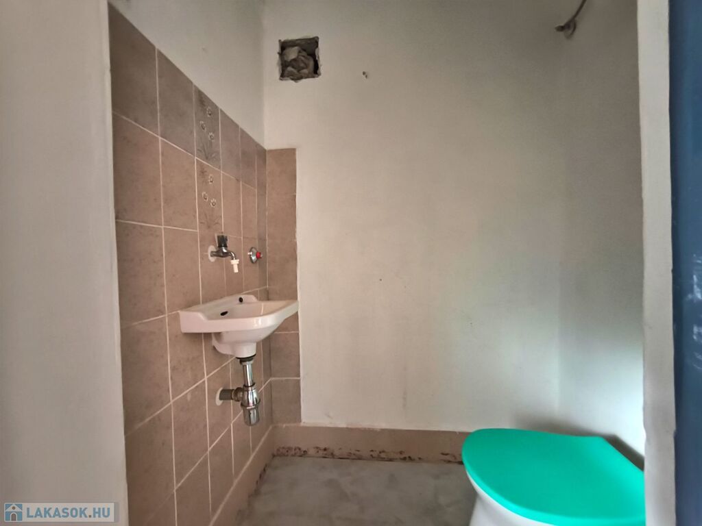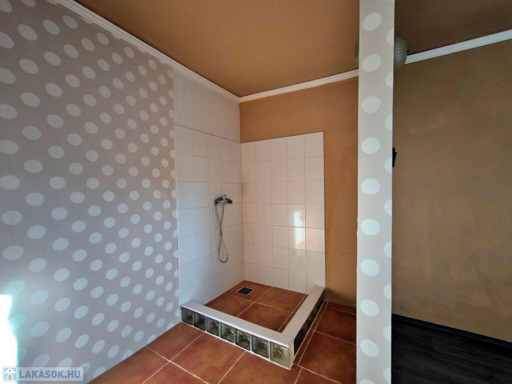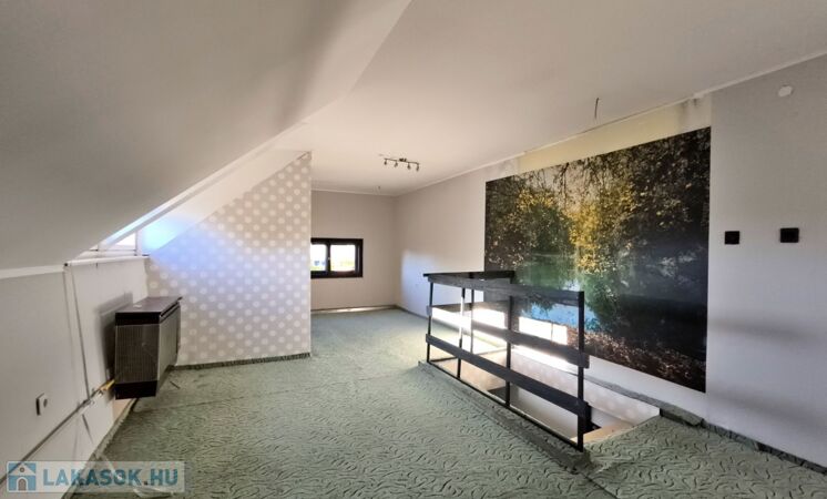 Földszint: nappali, étkező-konyha, gardrób, fürdőszoba, WC, előszoba
