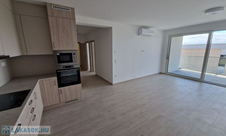 Győr-Adyváros központi részén, Pláza, Praktiker, Aldi szomszédságában, új építésű, AKADÁLYMENTES, prémium kategóriás nappali + 2 hálószobás lakás kiadó, SZÁMLAKÉPES tulajdonostól. Bérleti díj tartalmazza a teljesen gépesített konyhabútort és előszoba bútort. Igény szerint kérhető a lakás teljes bútorozása is. ( Bútorozott bérleti díj 369.000,-Ft)