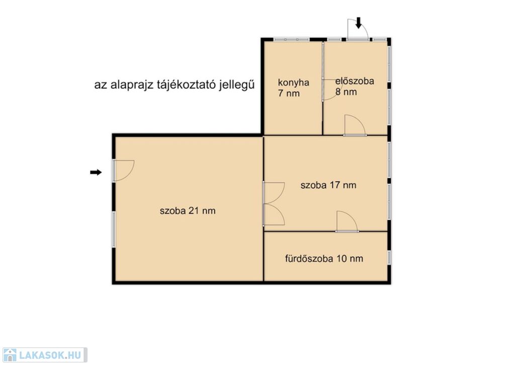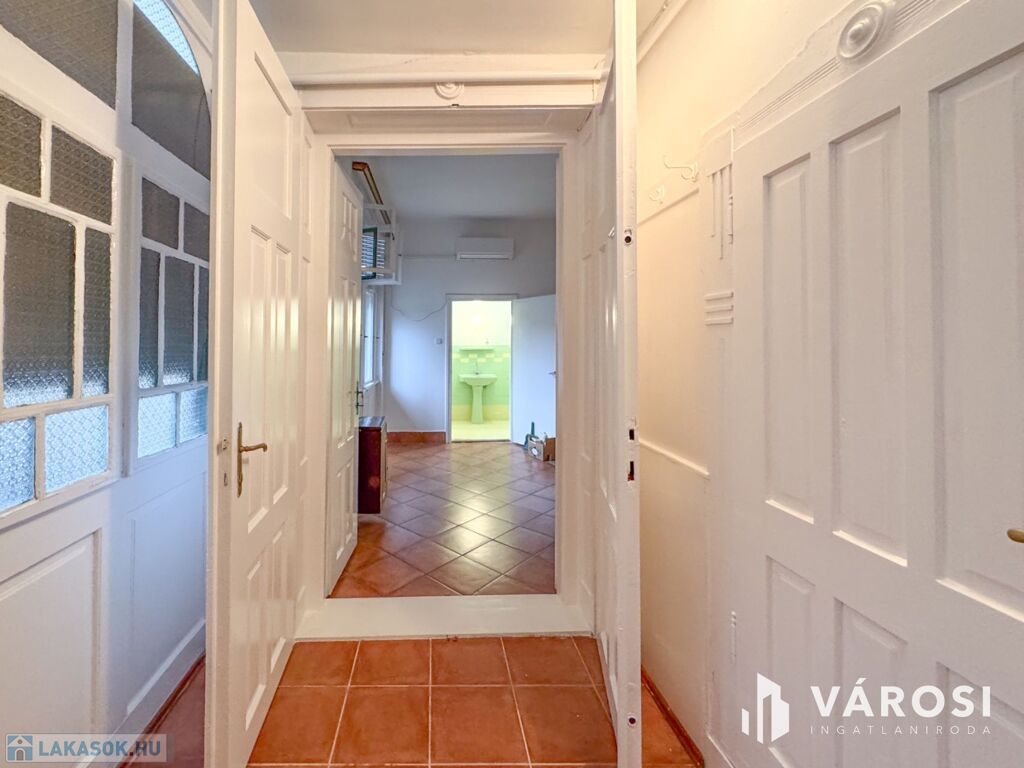 Az ingatlanban két tágas szoba, egy konyha, fürdőszoba és egy tágas előtér található. Különlegessége hogy két bejárattal rendelkezik így akár vállalkozás céljára is használható.