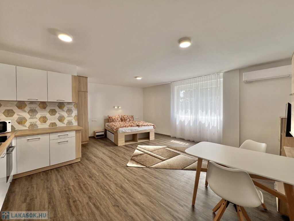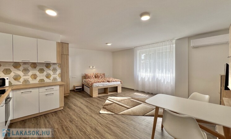 Kaposváron a belváros közelében a Pécsi utcában, teljes körűen, igényesen felújított társasház 1. emeletén lévő 35 m2-es, - akár azonnal költözhető - berendezett lakás kiadó. A lakásban tágas, hangulatos szoba - konyha - beépített konyhabútorral Gorenje gépekkel - étkező, fürdőszoba- wc helyiségek kerültek kialakításra. A lakás rezsije nagyon kedvező, a fűtése - külön mérővel ellátott - légkondicionálóval megoldott, a melegvíz ellátást villanybojler biztosítja. A lakás közelében megtalálható az S-Park bevásárló központ (Interspar, DM, Mc'Donalds stb.), de a belváros is 10-15 perc séta távolságra van. A lakást a tulajdonosa legfeljebb 2 felnőtt részére kívánja bérbe adni, a dohányzás és a kisállat tartása nem engedélyezett. A lakáshoz tartozik még a társasház zárt udvarában 1 személygépkocsinak parkolóhely is. Bérleti díj: 130.000.- Ft/hó + rezsi + 2 havi kaució. Amennyiben az ingatlan felkeltette az érdeklődését, kérem hivatkozzon a 972. számú ajánlatra! Irodánk címe: Kaposvár Irányi D. u. 9.