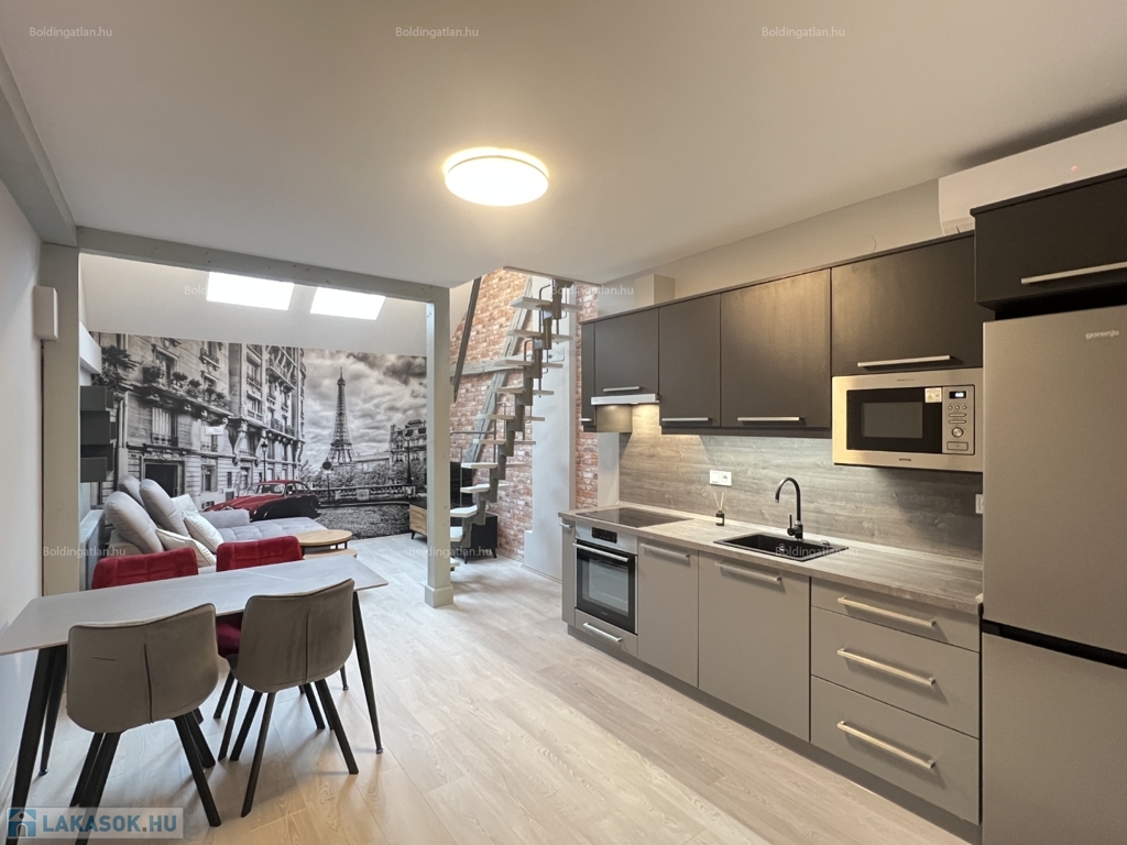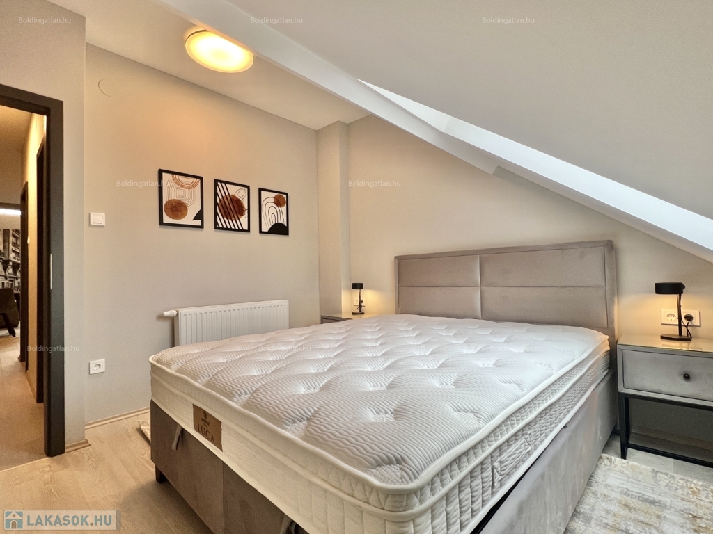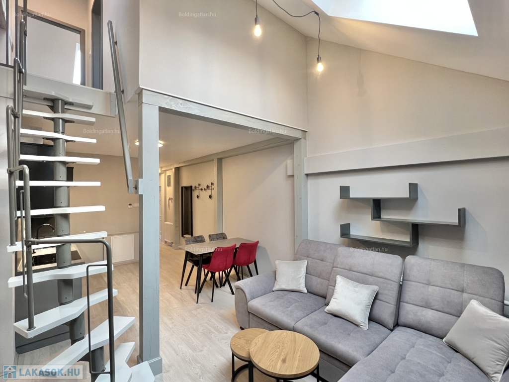 Kaposváron a belvárosban, a kórház közelében, a Bajcsy-Zsilinszky utcában, magas minőségben felújított társasház 2. emeletén 80 m2-es, - azonnal költözhető - berendezett exkluzív lakás kiadó. A lakás alsó szintjén tágas hangulatos nappali - konyha - beépített konyhabútorral Gorenje gépekkel - étkező, közlekedő, 1 szoba, fürdőszoba, wc, a felső szinten további 2 szoba helyiségek kerültek kialakításra. A lakás rezsije nagyon kedvező, a fűtése és a meleg víz ellátása gázközponti kazánnal megoldott, légkondicionálók kerültek felszerelésre, illetve az elektromos ellátást napelem biztosítja. A lakás a belvárosban található, a közelben megtalálható a kórház, bevásárlási lehetőségek, közintézmények, illetve a Kossuth tér is pár perc kényelmes séta távolságra van. A lakást a tulajdonosa minimum 1 évre, legfeljebb 2 felnőtt és 2 gyermek részére kívánja bérbe adni, a dohányzás és a kisállat tartása nem engedélyezett. Igény esetén a lakáshoz bérelhető még a társasház zárt udvarán 1 személygépkocsinak parkolóhely, illetve korlátozott számban garázs is. Bérleti díj: 250.000.- Ft/hó + rezsi + 2 havi kaució