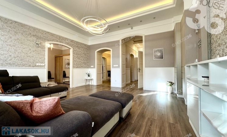 Kecskeméten, a Katona József Nemzeti Színház mellett, fsz.-i, műemlékké nyilvánított tégla épületben, 80 m2-es nagy nappali+ 1 szobás, luxus minőségben felújított lakás kiadó!
