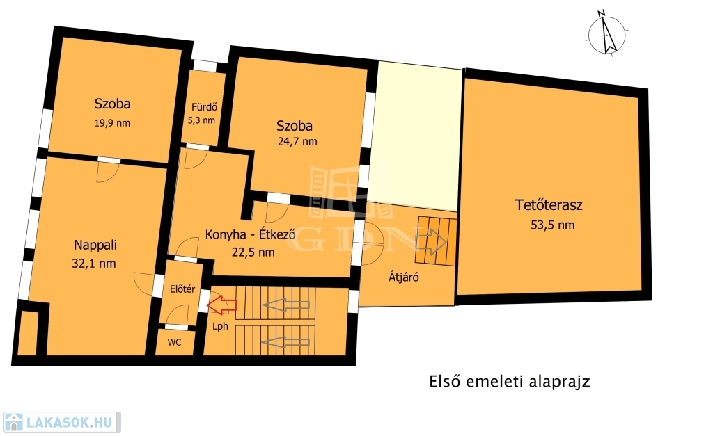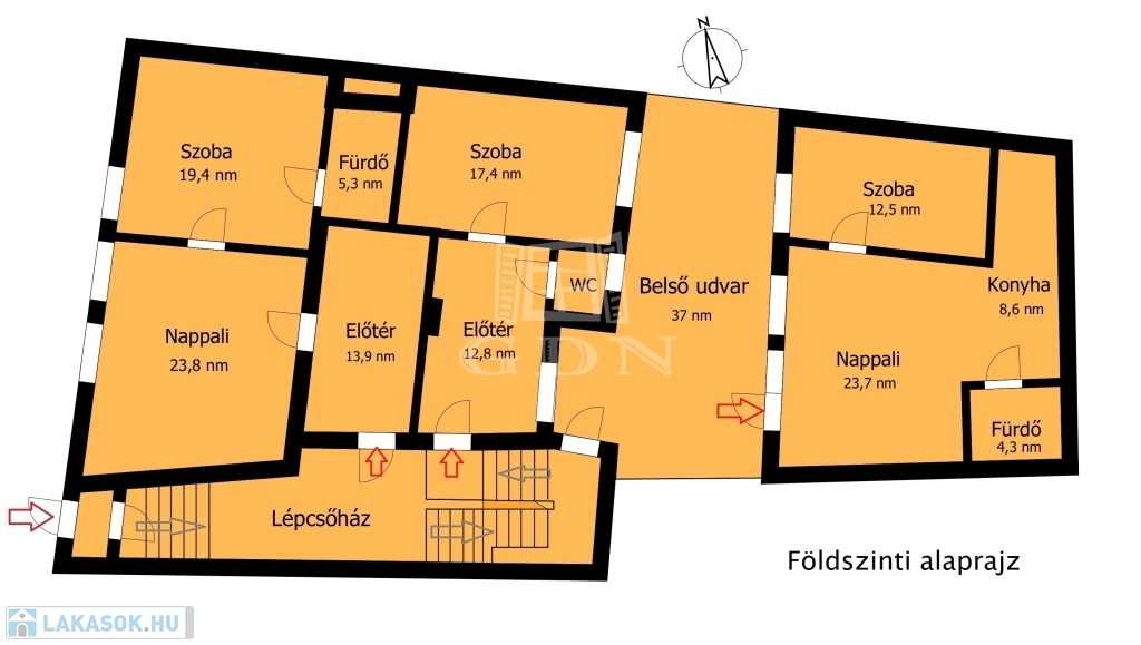 A hirdetésben található alaprajzi elrendezés leginkább lakásnak vagy irodának alkalmas, de még módosítás lehetséges, a bérlői igényekhez igazodva.