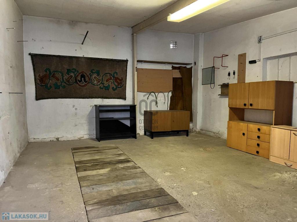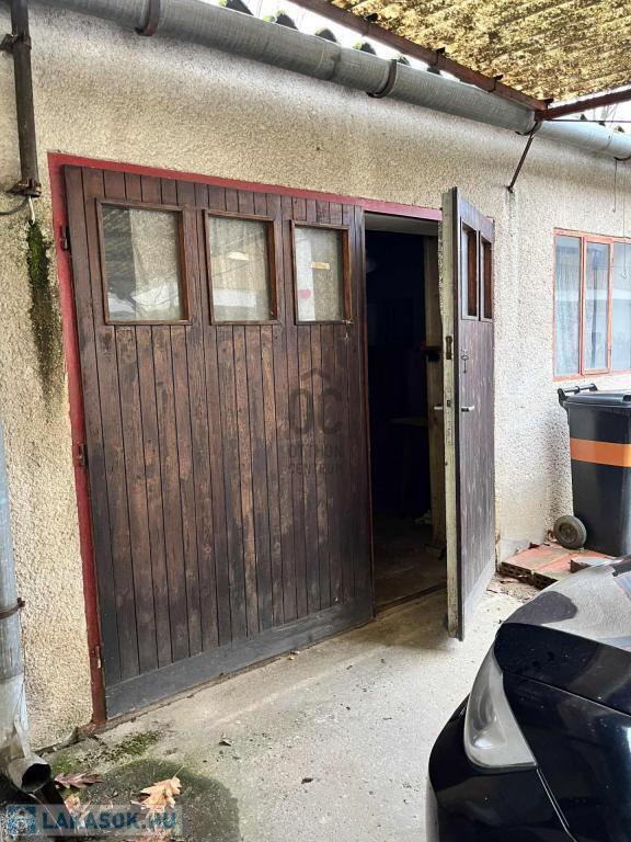 - A garázs ipari árammal, szerelőaknával, előtte fedett beállóval.
