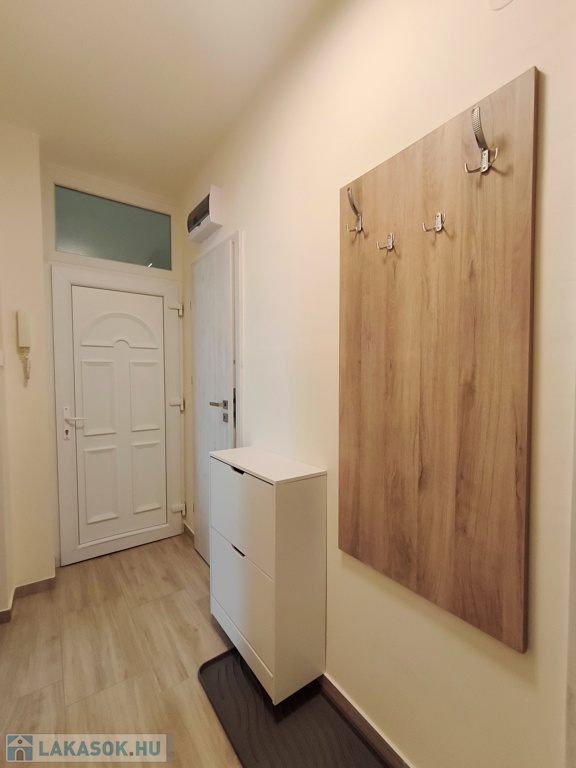 Nyíregyháza Belvárosában, az Északi körúton kiadó egy teljes körűen felújított, 43 m²-es, 1+1 szobás, műanyag nyílászárókkal és redőnnyel szerelt, járólap és laminált burkolattal rendelkező bútorozott, gépesített lakás téglaépítésű társasházban.