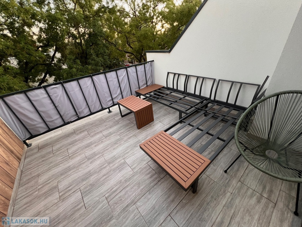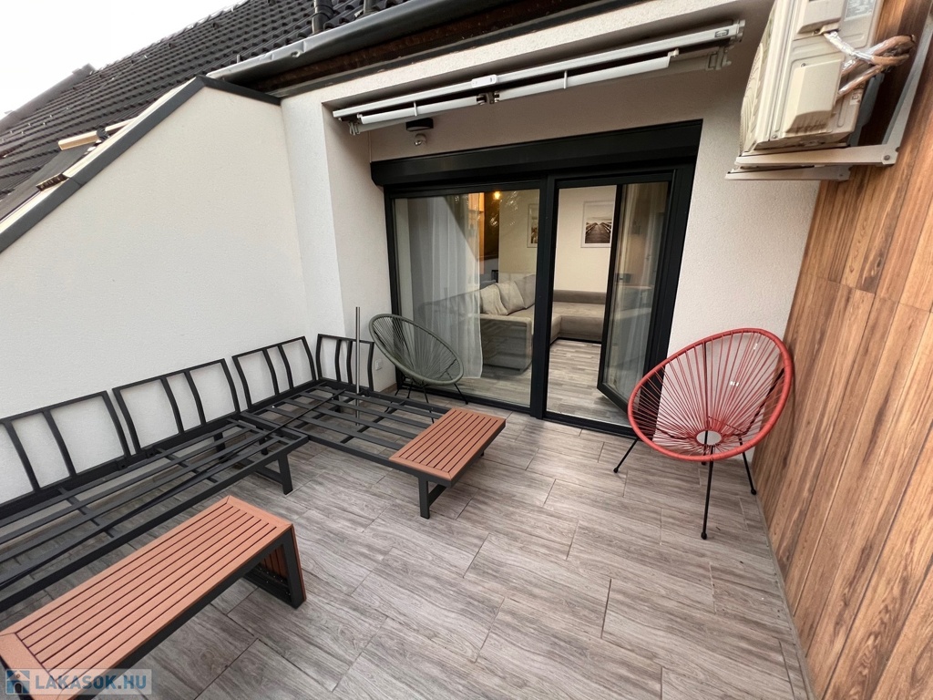 A lakás 2 szoba + nappali elosztású, hatalmas (20 m²-es!) terasszal, ahol a reggeli kávé vagy az esti pihenés garantáltan jobban esik. Egyedi gázfűtés, teljes bútorzat, gépesítés – csak a személyes holmid hiányzik. Zárt udvar, saját parkoló, nyugodt lakókörnyezet – minden, ami egy kényelmes otthonhoz kell.