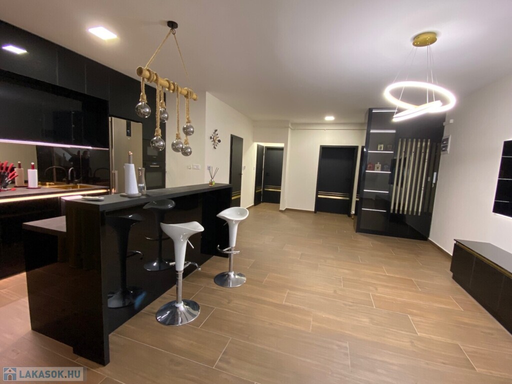 A lakás teljes körűen bútorozott, minőségi Bosch gépesítéssel felszerelt (mosogatógép, mosó-szárítógép).